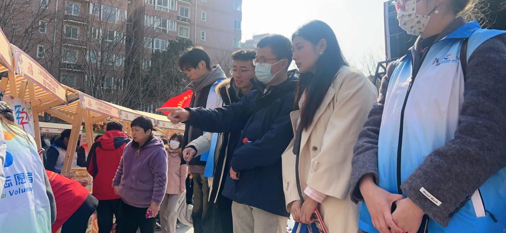 3月2日下午,阳光明媚,乐山绿地的市集为居民提供了50余处形式丰富的互动摊位,现场人头攒动。活动当天,支部同学们在社区开展志愿服务,帮助维持秩序,为文明大集市助力,弘扬“奉献、友爱、互助、进步”的志愿服务精神,以实际行动书写新时代的雷锋故事。