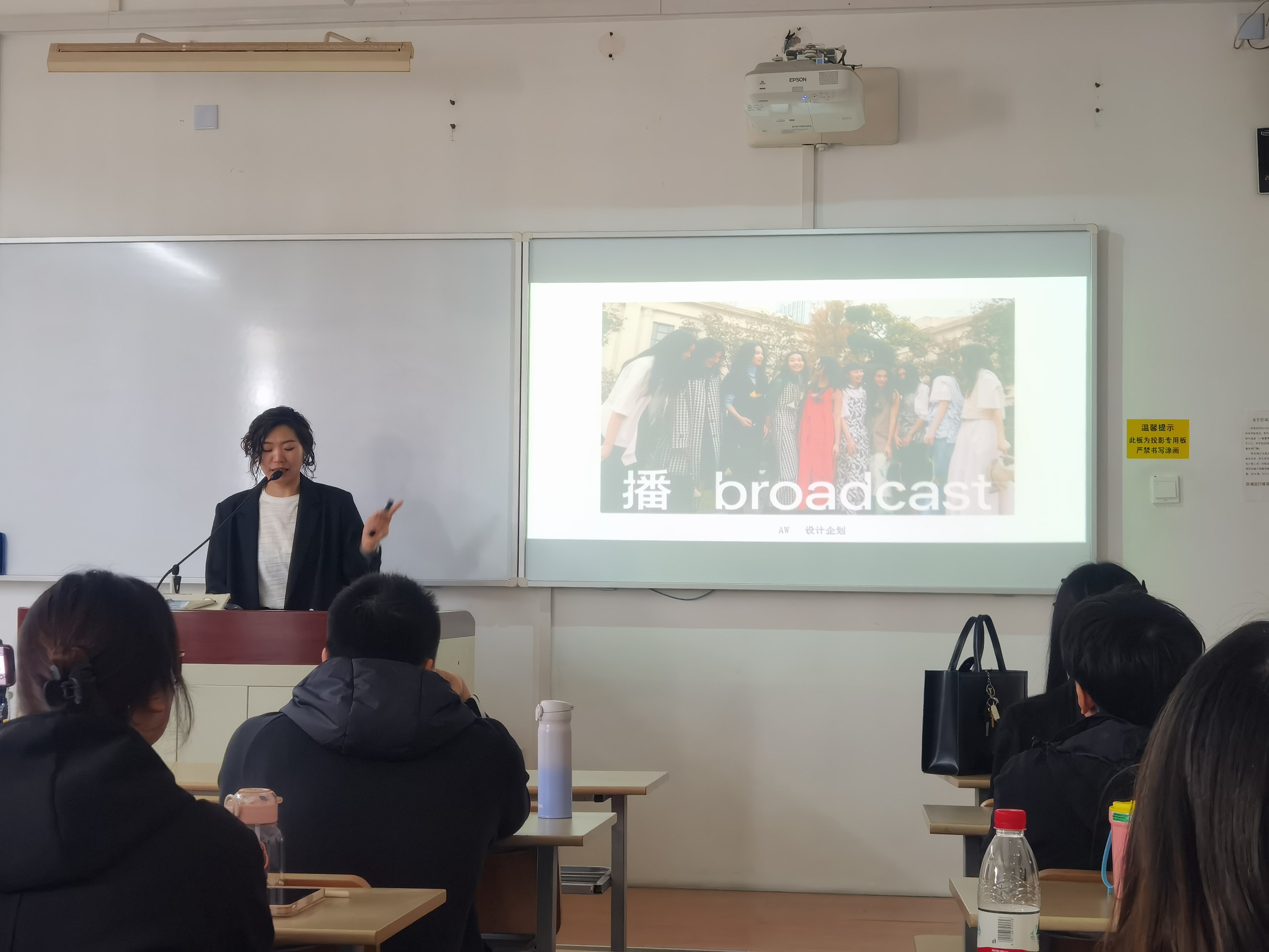 日播集团是一家具有国际化视野的品牌资产管理运营集团。下属上海日播实业有限公司是集设计、生产和销售为一体的专业服饰公司,拥有强大的设计师队伍和专业的管理团队,旗下品牌播broadcast是行业著名的品牌,被世界品牌网收录。作为“Broadcast 播”品牌的主设计师刘治德女士,拥有深厚的行业背景和丰富的品牌服装设计经验,结合企业真实案例,从市场调研企划概述、设计转化呈述需求、版型推敲结果复核、到井然有序完美交付,对新一季产品开发流程进行了生动讲析,并对相关工作的职业素养及专业技能提出了要求。精彩的讲座结束后,同学们依然围着企业专家不停的提问,希望能有更多的交流。