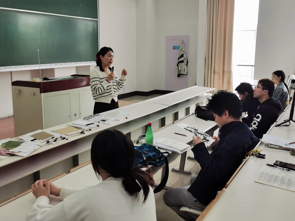 马艳丽经理具有多年的知名品牌面料、辅料、饰品、成衣的开发和采购经验,专业知识功底深厚。她精心准备了近百余种具有代表性的面辅料实物,结合工作中面料开发及采购的实际要求,分门别类地展示分析了面料的外观、手感、材质、特征及应用,使同学们将学习过的理论知识直观落地在实际产品中,加深了理解。这些实物案例,对接下来同学们将要进行的织物结构与设计的上机实验设计,提供了很大的设计启发。同学们积极传阅实物面料,凑近了仔细触摸、观察和思考,是一次难得的实际体验。大家也对纺织面料设计变化的多样性充满好奇和兴趣。