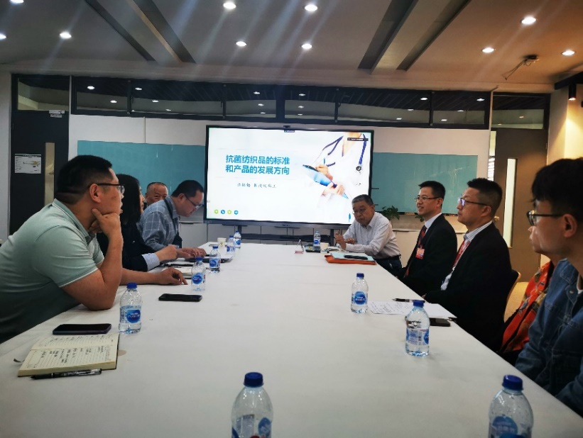 报告结束后,施楣梧教授与青年教师和研究生们又进行了深入的沟通与交流,解答了学院师生在抗菌纺织品设计开发方面的一些问题以及部分老师提出的关于科研、尤其是如何与企业深度沟通和合作的疑虑。施将军的报告为老师们提供了更全面的科研视野,激发了同学们对抗菌纺织品领域的研究兴趣。