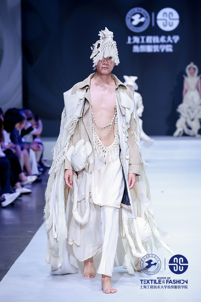 发布会第二部分为服装与服饰设计(中法合作项目)的本科毕业设计作品。中法合作项目毕业设计以“科幻的绿色本真,The Green Reality of Science Fiction”为主题,分别从“科技绿色生态”、“科幻即真实”、“纯粹真实世界”等三个维度展开思考,探讨科技、生态、环境、社会等问题。