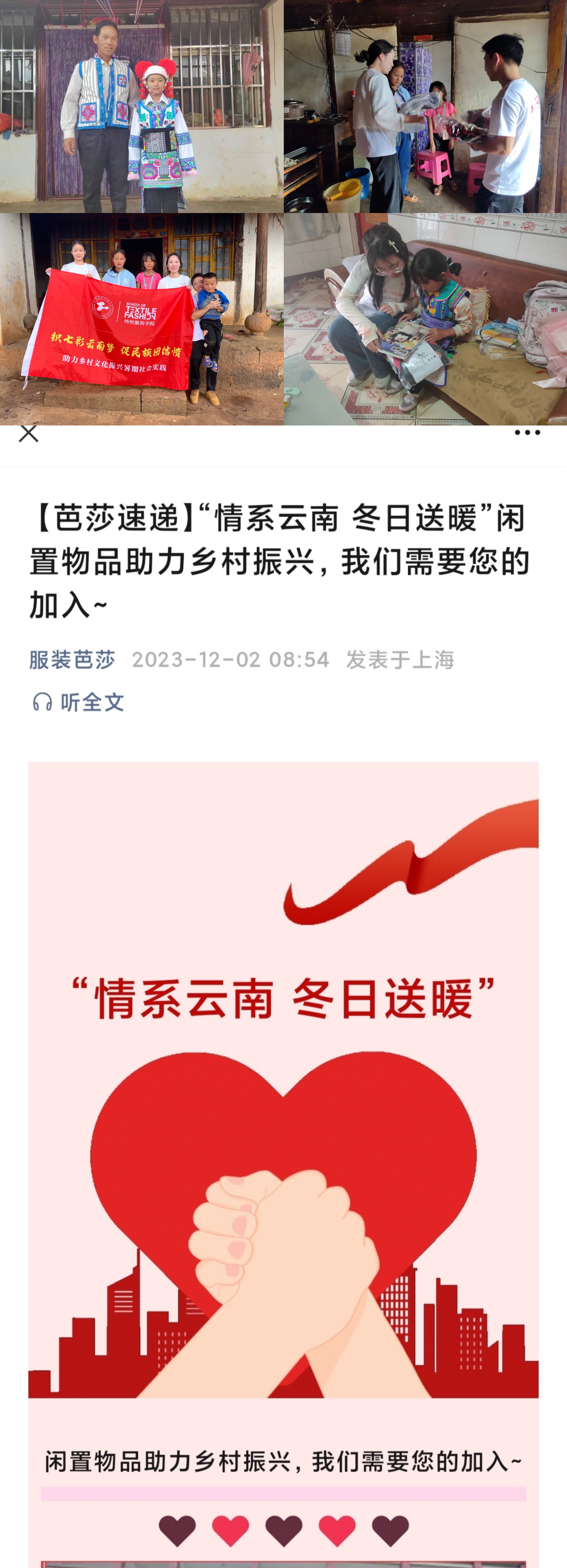 近日,在唐全老师的倡议下,实践团队的成员们决定发起一场捐赠活动,为小翁邦小学的孩子们送去温暖和关爱。捐赠活动通过前期在学院微信公众号平台“服装芭莎”上的广泛宣传,取得了很好的效果。
