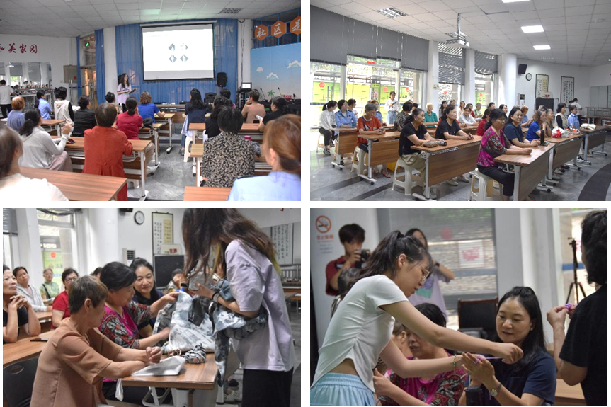 活动中,特邀徐律老师科普组成员张莹等向社区居民分享的新中式穿搭中的传统美学元素以及如何在日常生活中实践并探索新中式穿搭等内容引起了居民浓厚的兴趣,他们被中国传统文化之美深深吸引。