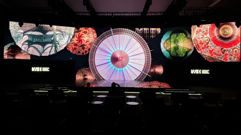 本次秀演以衣为载,以尚为策,东方为源,突破传统的服装走秀表演模式,舞台由多块大屏和裸眼3D视效结合,实现虚实结合,融声、光、画、表演为一体的创新综合设计表达。