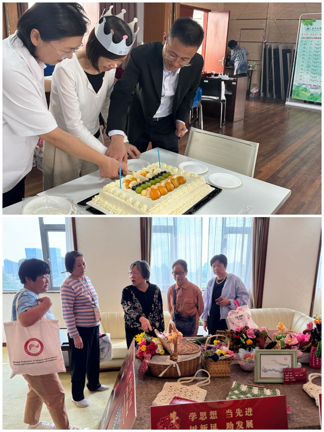学院为恰逢生日的老教师准备了生日大蛋糕,老教师们一边分享蛋糕,一边畅谈家常,其乐融融。在场的老教师们欣慰之余,纷纷表示将继续关注和支持学院发展,衷心祝愿学院发展越来越好。接着老教师们结伴去参观了离退休教职工艺术作品展。