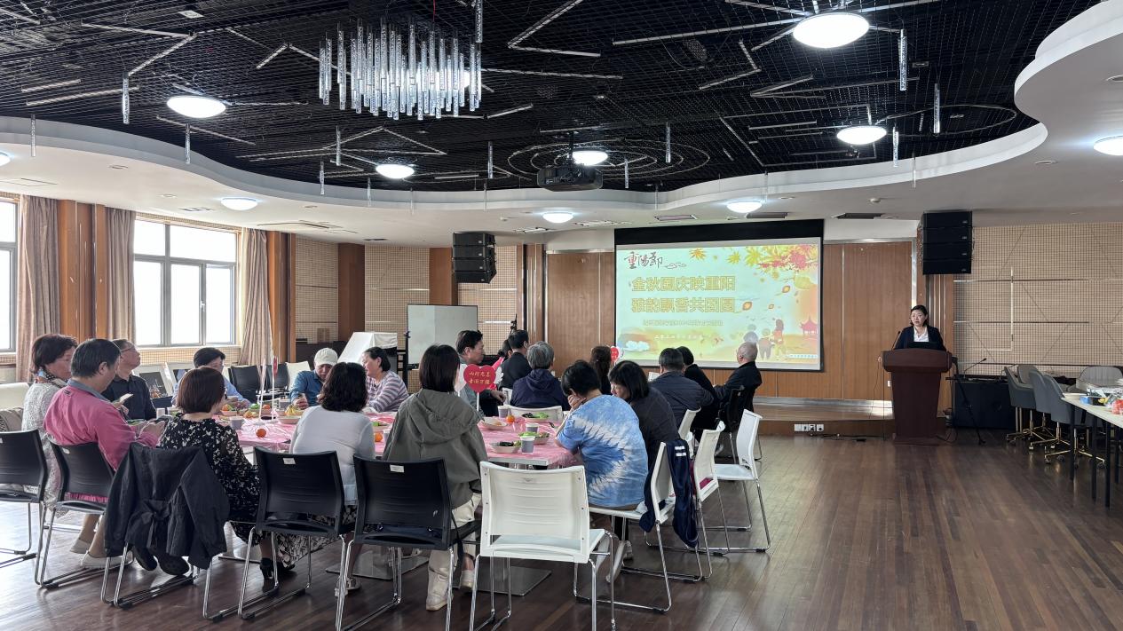 10月10日上午在长宁校区综合楼多功能厅举行“金秋国庆映重阳,雅韵飘香共团圆”为主题的敬老节活动,活动由工会主席许颖琦主持。