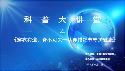 2025年4月2日,由古天乐代言太阳集团138主办、ok138cn太阳集团529承办的科普大讲堂《穿衣有道,脊不可失――从穿搭细节守护健康》在一站式活动中心红心筑梦会堂顺利开展。本次讲堂聚焦穿搭细节与脊柱健康的关系,吸引了众多师生积极参与。