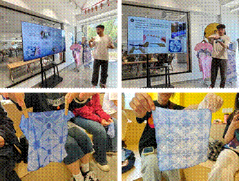 此外,研究生党员还通过纹样解析、民俗寓意讲解,带大家读懂扎染背后的文化,探索非遗技艺如何赋能现代生活。演示结束后,同学们纷纷发挥创意动手实践,体验了传统技艺的乐趣。