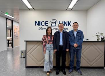 为推进学院产教融合高质量发展,开展纺织工程专业访企拓岗专班工作,5月8日,纺织工程系副主任高伟洪赴海宁佳联沙发有限公司上海分公司(Nice Link)调研,公司面料设计总监宋岩、高级产品开发经理李方挺参加活动。