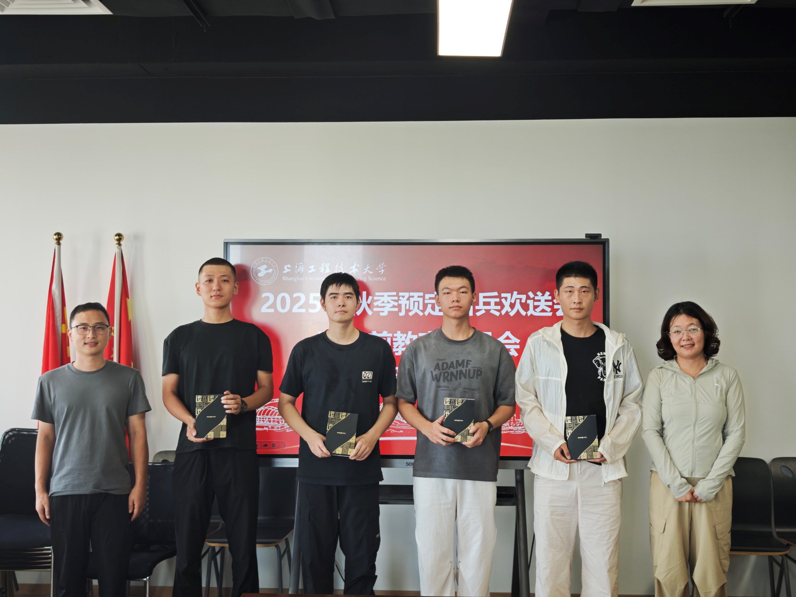 欢送会上,学院为即将参加役前集训的大学生赠送纪念品,寄语同学们要以“厉兵秣马待风雷”的严谨做足役前教育准备。会后,老师们与预定的新兵合影留念,欢送同学们前往训练基地开启新的征程。