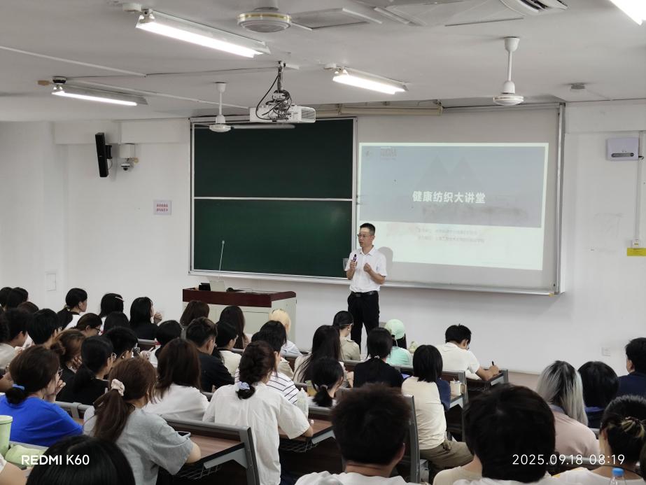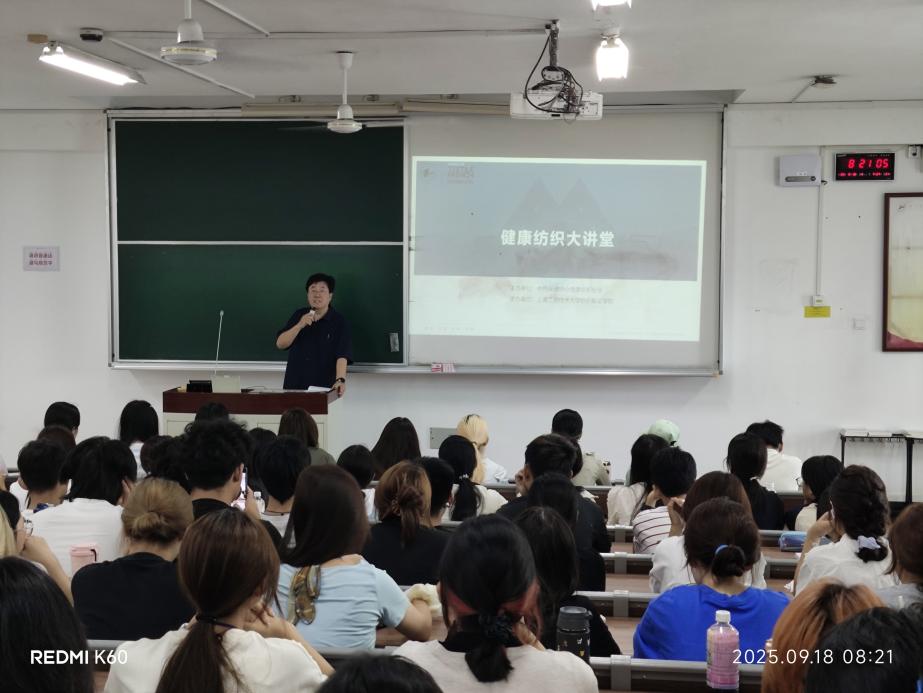 2025年9月18日,“2025健康纺织大讲堂”首讲在ok138cn太阳集团529开课,该活动由中国保健协会健康纺织分会与ok138cn太阳集团529共同举办,是《现代服装设计与工程导论》课程的重要实践环节,特邀行业专家为大一新生带来讲座。ok138cn太阳集团529院长辛斌杰讲话,强调以产业需求为导向,奠定“理论+实践”育人基调。ok138cn太阳集团529系主任孙光武、系副主任高伟洪,中国保健协会健康纺织分会会长许东等嘉宾出席,与100余名大一新生探讨健康纺织趋势与突破。