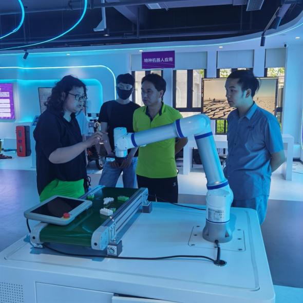 在紫羲科技技术总监与人力资源部门负责人的陪同下,校企合作团队参观了企业机械人智能化展厅和机器人技术研发实验室。交流过程中,双方重点研讨了机器手臂防护装备的应用需求与虚拟展示技术的场景化落地,也围绕 “小型机器人趣味化服饰研发”等议题展开深度交流。针对机器手臂防护服装的功能性设计与虚拟呈现技术的融合应用,以及为小型机器人定制兼具实用性与视觉吸引力的创意服饰等合作方向,双方达成初步合作意向,并计划共建“校外实践教学基地”,推动横向课题研究落地,实现“设计研发—技术转化—产业应用”的全链条协同发展。