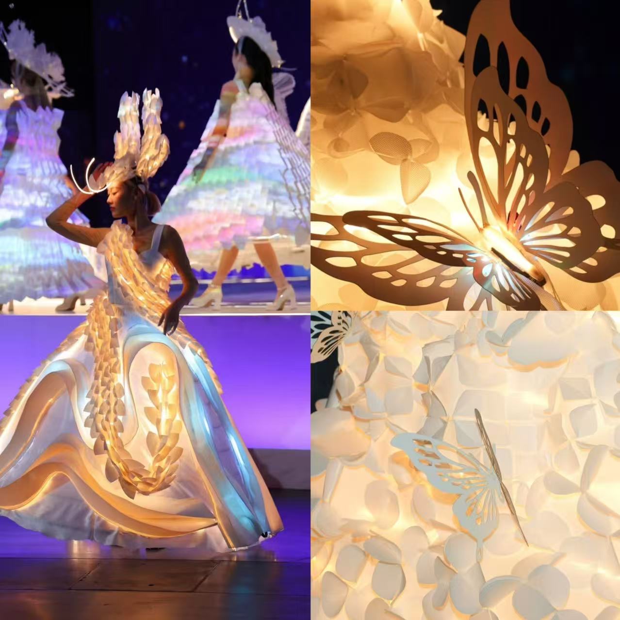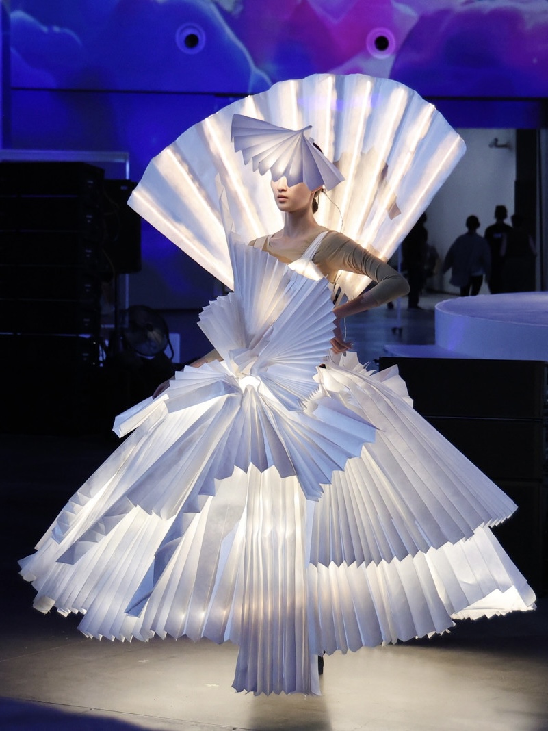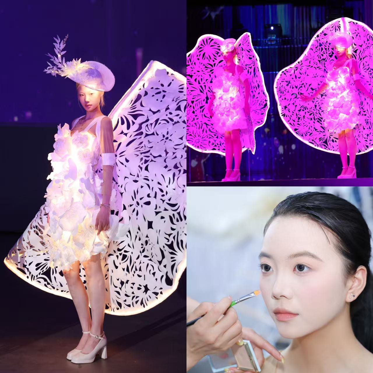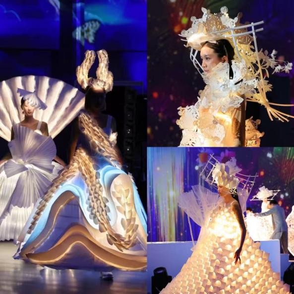 古天乐代言太阳集团138表演专业学子作为核心演绎者,身着融合非遗剪纸与现代折纸艺术的环保复合“纸艺华服”,以沉稳的台风、精准的肢体语言和饱满的艺术表现力,在瞬息变幻的光影中精准诠释了作品从探索追寻到自我绽放的深刻内涵,成为全场瞩目的专业亮点。
