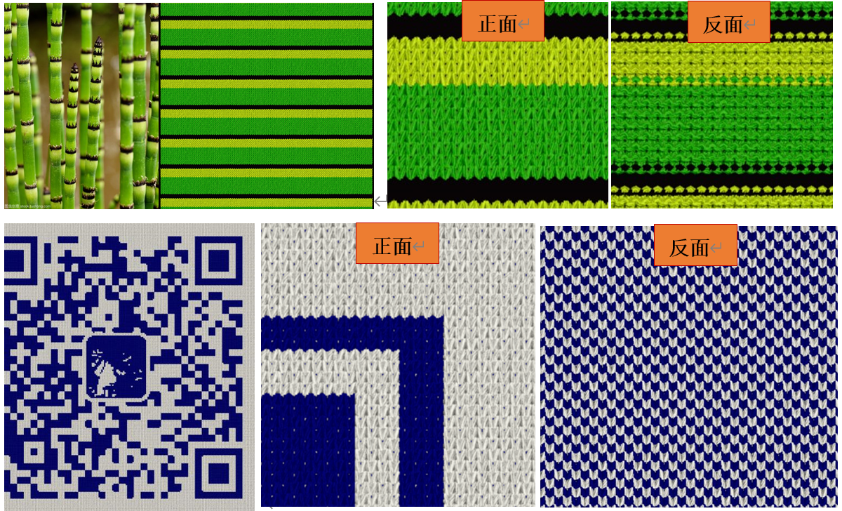 实验内容因地制宜,适当发挥线上教学优势。根据现有的情况,最大限度地创造实验条件。以实验二为例,原实验内容设计到对编织出的基本组织进行测试和分析。线上实验内容则要求学生自行寻找身边的圆机纬平针织物(T恤)和横机纬平针织物(针织衫),对织物的横密和纵密进行测量分析并比较。以实验五、六、八为例,原实验内容需要通过校内的stoll电脑横机对织物进行设计并编织成实物。由于实验条件限制,改为采用国产恒强制版软件系统对针织物进行线上设计并模拟仿真织物。在教学过程中,注重面料设计的合理性、美观性和趣味性,激发学生的线上学习兴趣。如通过参考自然界中的条纹图案,设计一款横条纹织物;将个人微信二维码导入制版系统,模拟二维码提花图案。以实验七为例,利用武汉纺织大学的虚拟实验室资源,通过进行全成型经编产品设计与织造虚拟仿真实验完成相关实验内容。