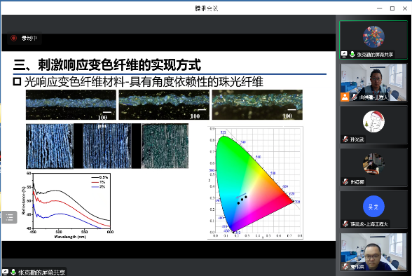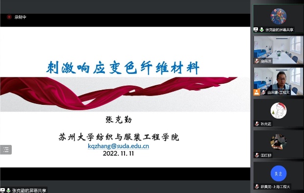 会议共分为两部分,前半部分张克勤教授以“刺激响应变色纤维材料”为专题讲座,介绍了刺激响应变色纤维材料的制备方法及其在纺织服装、时尚产业、军事国防等领域的应用,后半部分张教授结合自身丰富的学术经验,从“准备做什么”、“为什么要做”、“打算怎么做”、“为什么能做”以及“能成什么样”等5个方面,详细介绍了基金申报书的写作方法和注意事项。