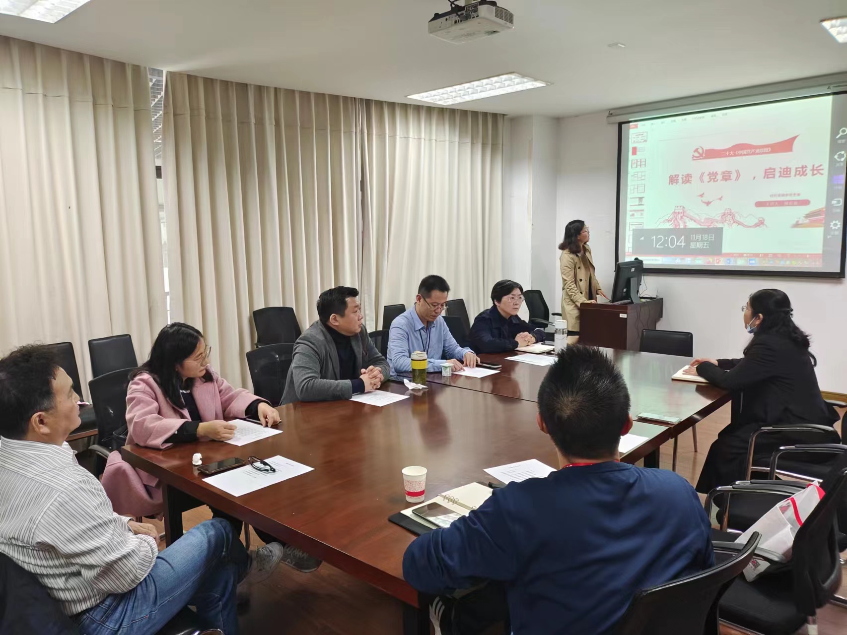 朱君璇书记首先传达学习了习近平总书记关于“认真学习党章 严格遵守党章”的重要指示精神,强调了学习党章是每个党员应尽的义务和责任。并简要介绍了中国共产党第二十次全国代表大会关于《中国共产党章程(修正案)》决议的相关背景。随后谢志霞副书记结合学习《中国共产党章程》的心得体会以“解读《党章》,启迪成长”为题给中心组成员上了一堂微党课。分别从“历次党章修订”“党章主要修订内容”和“党章重要知识点”三方面与党委中心组成员共同学习《中国共产党章程》。
