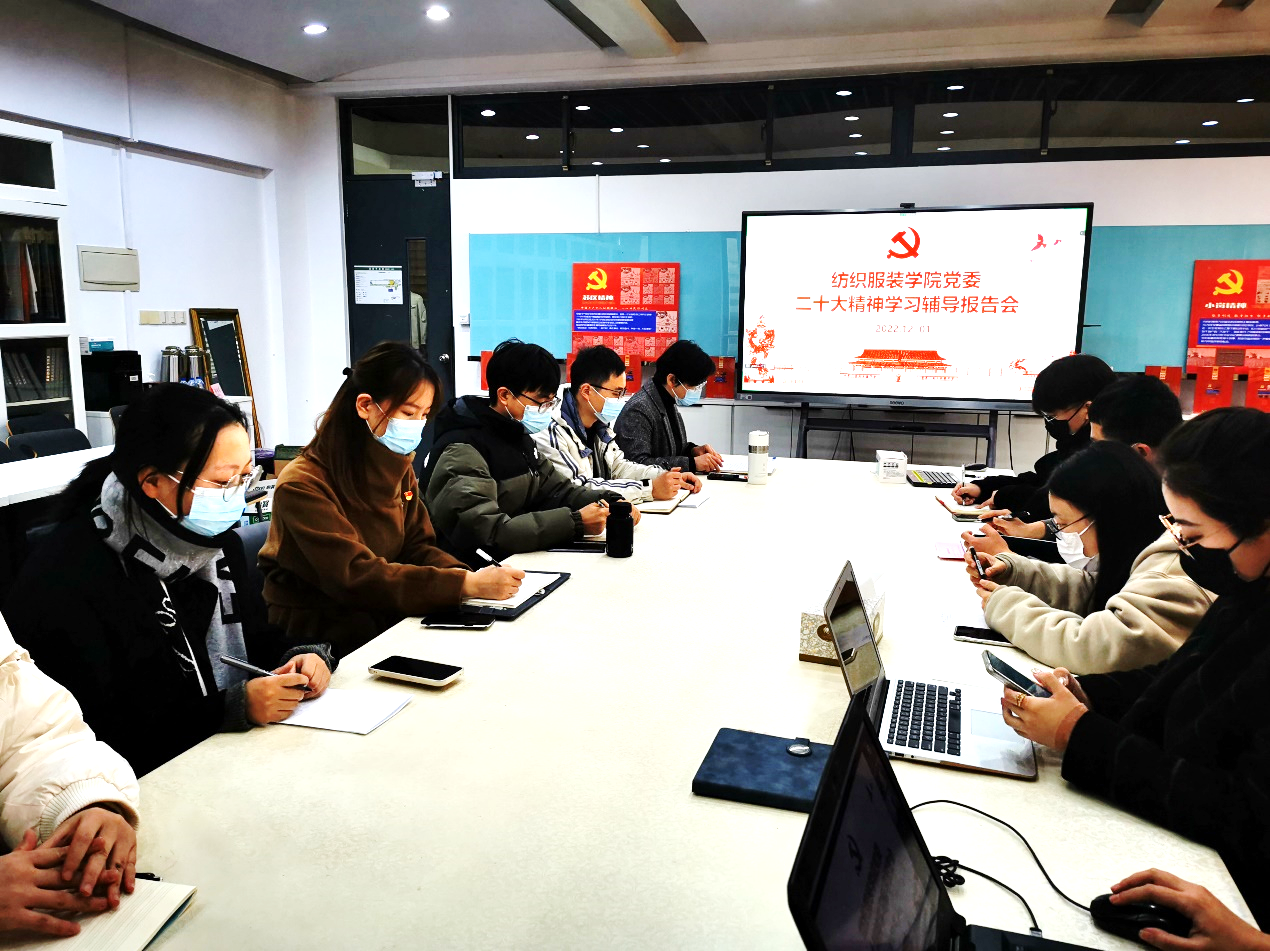 朱君璇书记对曾教授主题鲜明、内涵丰富的辅导报告作出总结,对班子成员、各支部书记、党员教师、辅导员、学生党员分别提出要求。她强调,学习宣传贯彻党的二十大精神,是当前和今后一段时期的首要政治任务,盛会擘画的宏伟蓝图和发出的冲锋号角将指引每一个纺服人奋楫杨帆,勇毅前行!学院将聚焦党的二十大描绘的宏伟蓝图奋勇攻关,主动服务国家的重大战略需求,实现学校第三次党代会提出的“新三步走”奋斗目标,落实学院“十四五规划”。