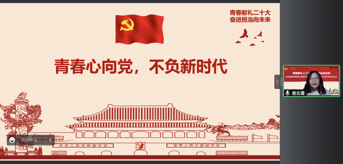 团校课程共分为四讲,第一讲“青春心向党,不负新时代”由学院党委副书记谢志霞老师带领学院学习党的二十大的基本内容,通过讲述“90后”二十大代表以及各行各业兢兢业业奋斗的青年的事迹,告诉同学们“青春是什么样子?”带领大家思考新青年如何在新时代迸发出强有力的生命力,希望同学们怀抱梦想又脚踏实地,敢想敢为又善作善成,发扬吃苦精神和斗争品格,扎根人民、奉献国家,以青春之力涂写盛世华章,为中国式现代化、全面推进中华民族伟大复兴而奋斗!