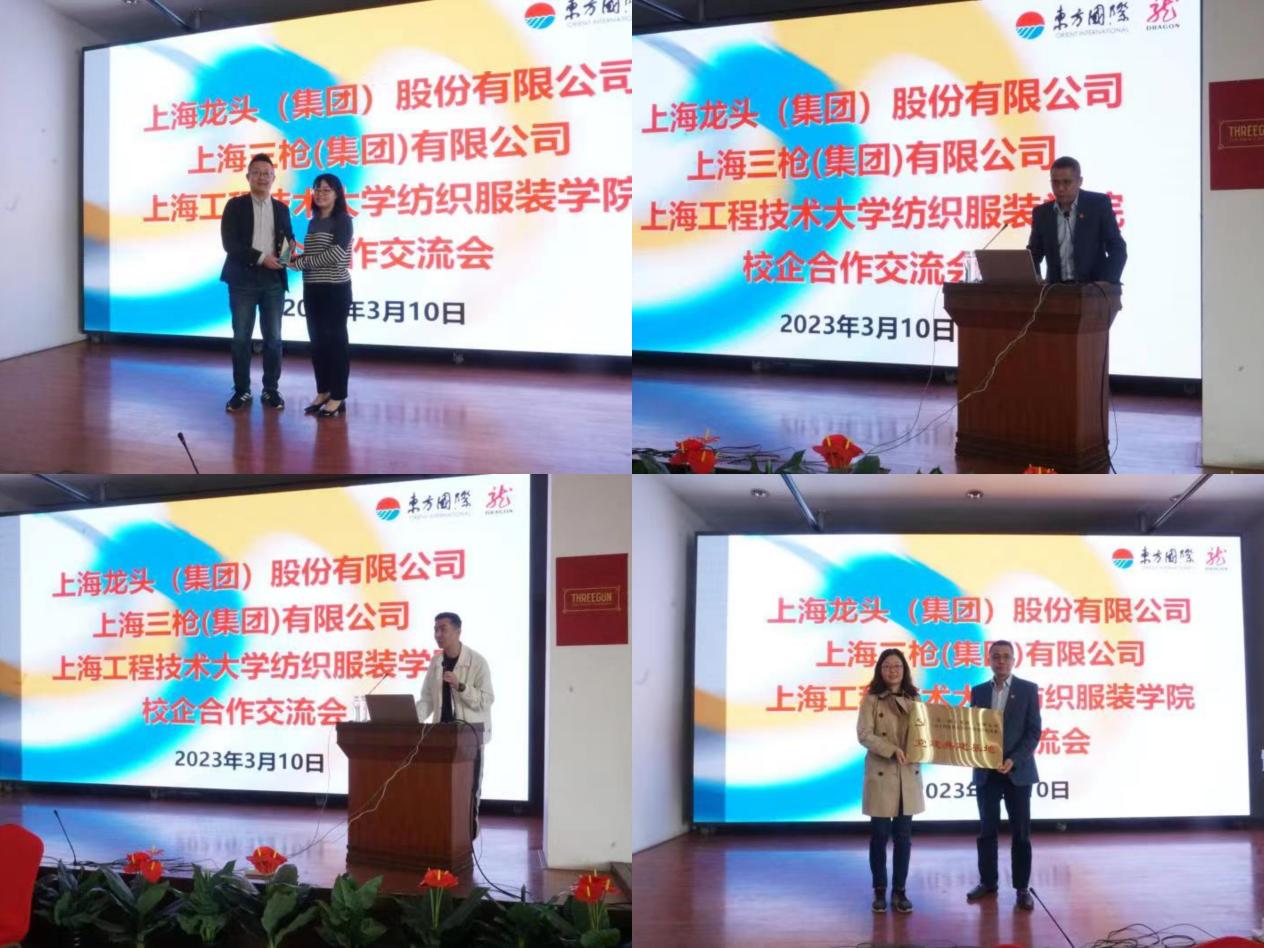 ok138cn太阳集团529党委副书记谢志霞对上海龙头(集团)股份有限公司、上海三枪(集团)有限公司长期以来对学院工作的关心和支持表达最真挚的感谢。她详细介绍了学院的总体情况,指出学院以卓越工程师教育为引领,以现代服装产业发展需求为导向,构筑与行业“四协同”的办学理念,形成了特色鲜明的办学模式和人才培养模式,并希望从专业共建、产业对接、校外指导、就业招聘等方面开展全方位的校企合作,实现共赢。