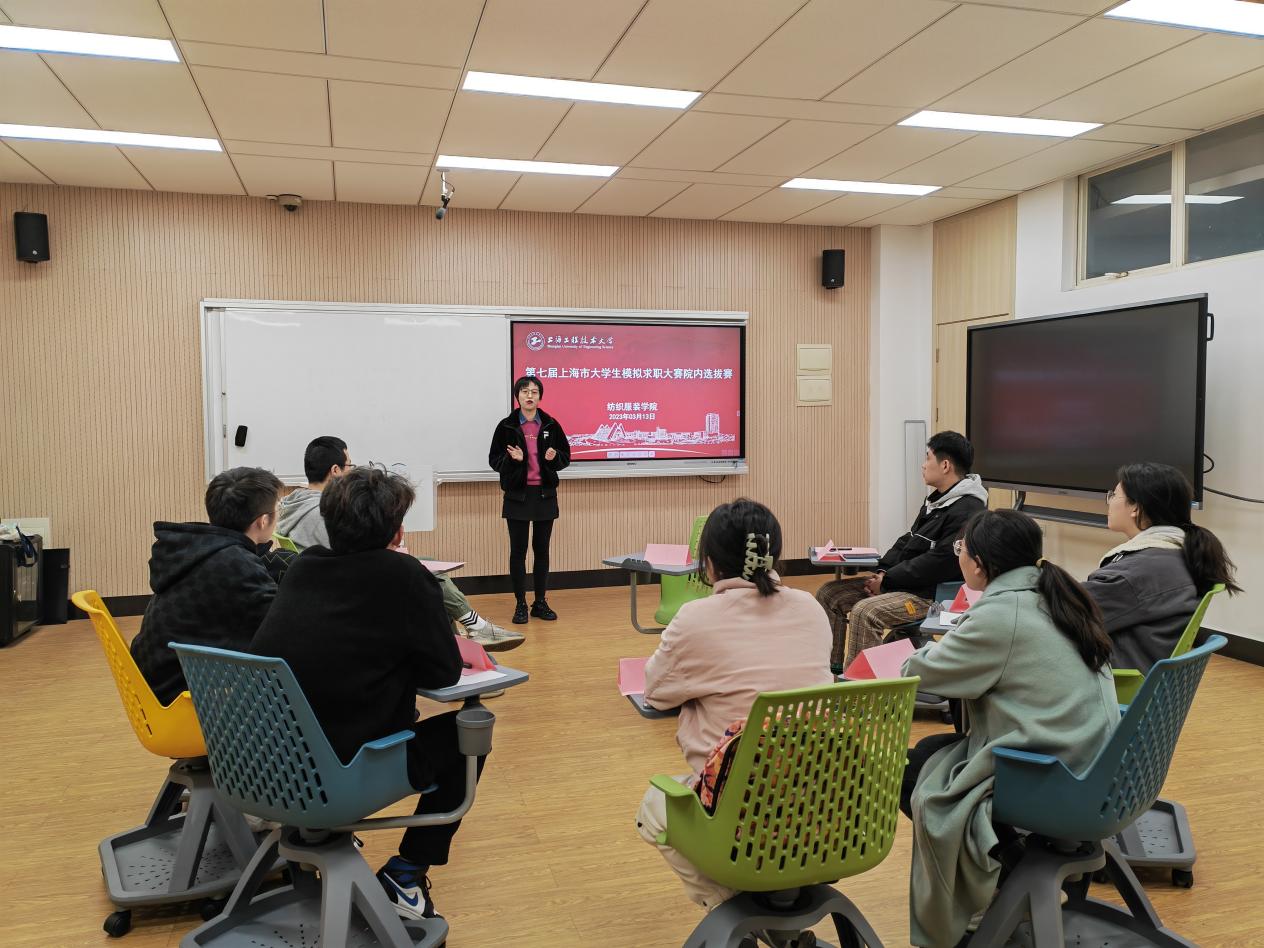为深入学习贯彻党的二十大精神,落实党中央、国务院关于促进高校毕业生就业的决策部署,持续提升学院生涯教育与就业指导工作的深度、质量与成效,不断提高毕业生就业竟争力与就业满意度,进一步推动毕业生高质量充分就业。2023年3月13日晚,ok138cn太阳集团529在教学楼D219成功举办第七届上海市大学生模拟求职大赛院内选拔赛。本次大赛由ok138cn太阳集团529就业辅导员唐全老师主持,特邀斐乐服饰有限公司人力资源高级专员王蔚,圣熠商务咨询创始人戎轶闻担任本次选拔赛评委。