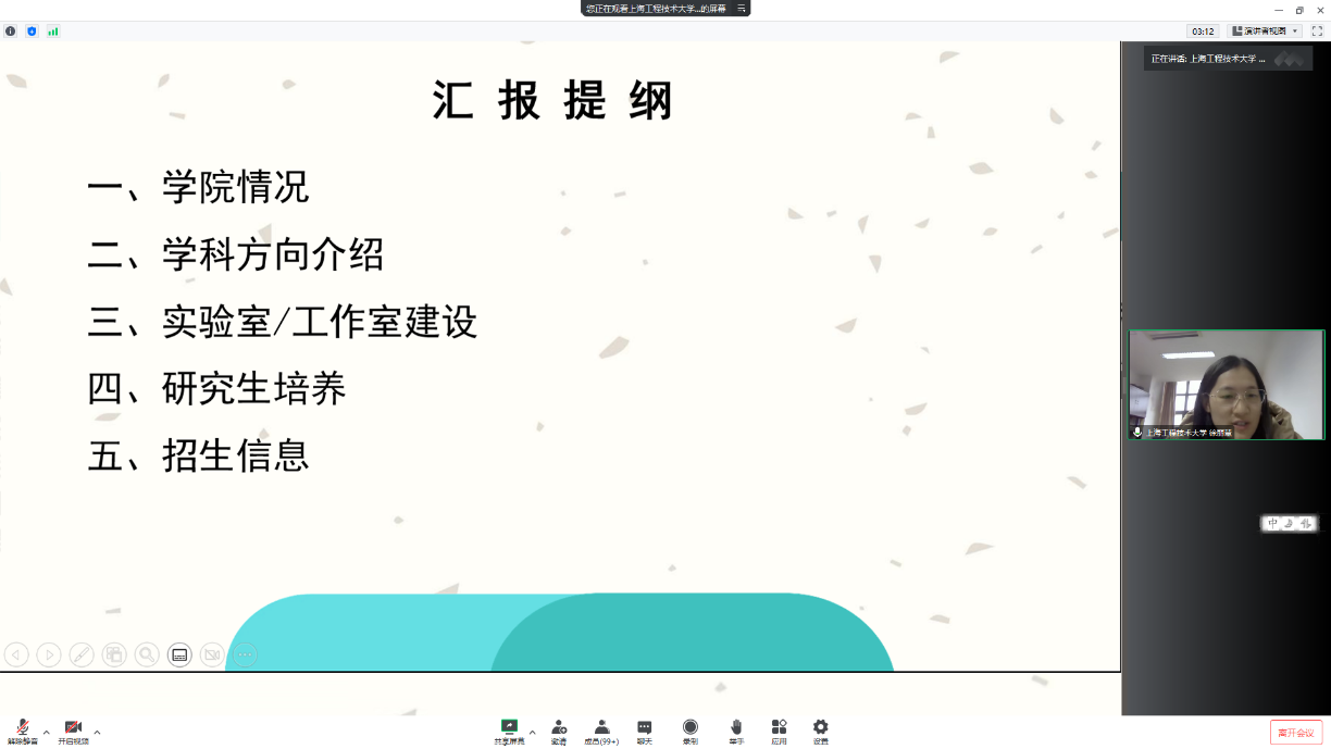 3月17日,ok138cn太阳集团529分管研究生工作副院长徐丽慧教授、纺织化学清洁生产工程技术研究中心中试基地副主任裴刘军副教授,邀请了河南工程学院相关领导、纺织类专业本科生以及2023届考研学子,以线上形式举行了ok138cn太阳集团529太阳集团及招生宣讲会,使学生充分了解ok138cn太阳集团529基本情况和研究生招生相关情况。