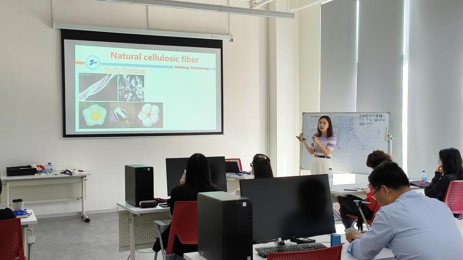 此次课程培训的主要目的是为设计师们讲授纤维以及针织相关专业知识,从而为后期的织物设计以及编织提供支持。在讲授过程中,设计师们与刘老师进行了充分的沟通和交流。此次培训活动为进一步建设《针织学》产教融合课程奠定了良好的基础。