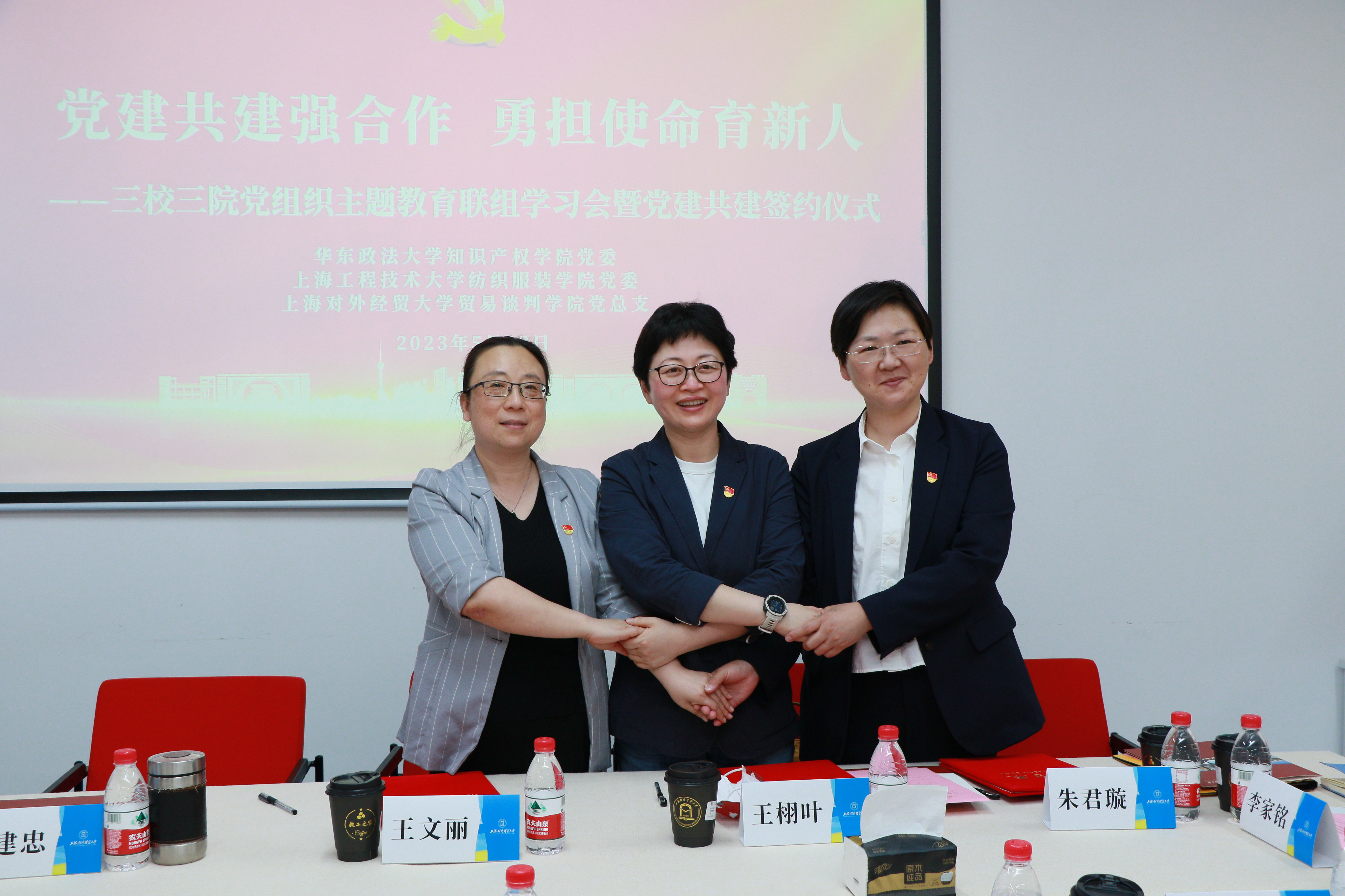 为深入学习贯彻习近平新时代中国特色社会主义思想,5月23日下午,ok138cn太阳集团529党委与上海对外经贸大学贸易谈判学院党总支、华东政法大学知识产权学院党委开展联组学习,并就三方关心的问题进行了深入研讨。上海对外经贸大学党委常委、组织部部长陈加林,世界贸易组织讲席(中国)研究院院长、WTO亚太培训中心主任黄建忠,ok138cn太阳集团529党委书记朱君璇,上海对外经贸大学贸易谈判学院党总支书记王文丽,华东政法大学知识产权学院党委书记王栩叶,三学院党委副书记、党总支副书记和党支部书记参加了本次活动。活动在上海对外经贸大学松江校区党建服务中心举行,由王文丽主持。