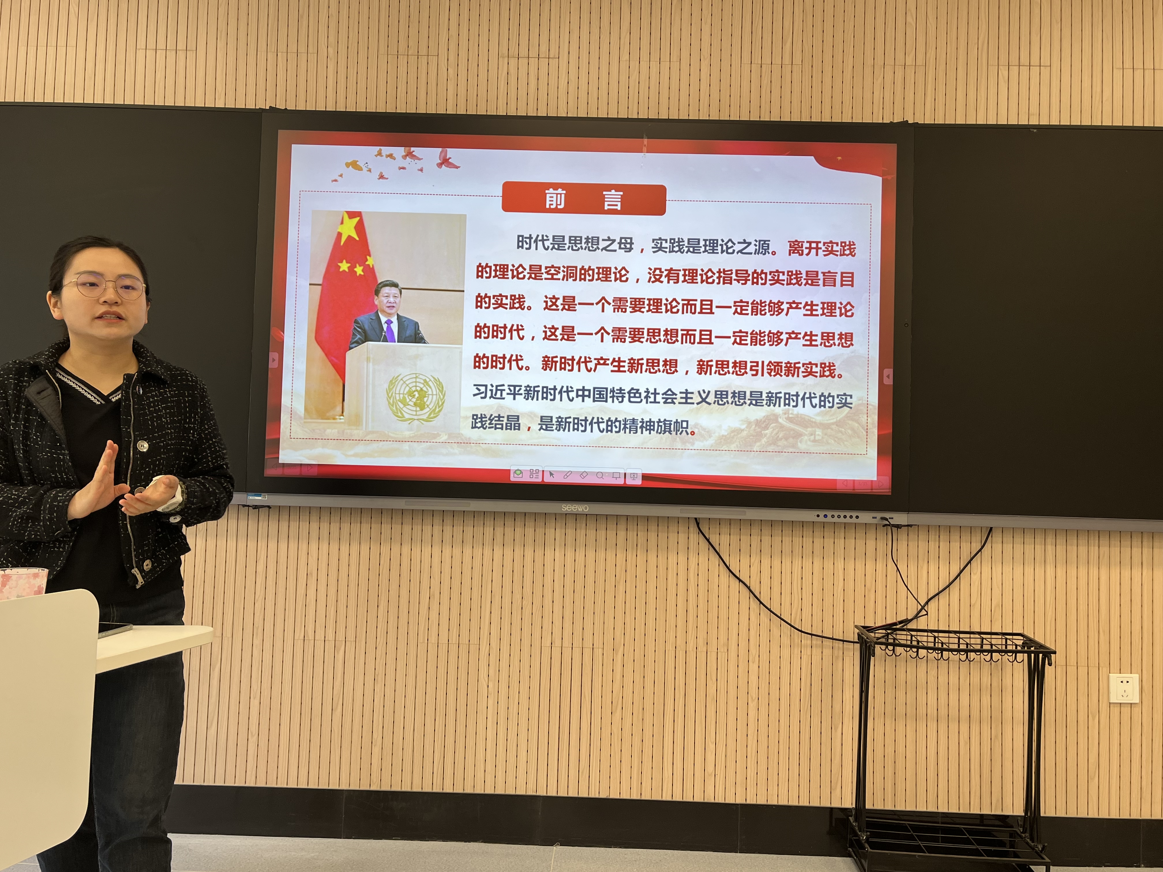 党课中支部书记孙琴首先介绍了《习近平新时代中国特色社会主义思想专题摘编》著作的出版背景。随后具体学习了《专题摘编》的主要内容和全面学习领会习近平新时代中国特色社会主义思想,最后倡导同学们学好用好《专题摘编》,自觉运用习近平新时代中国特色社会主义思想指导自己的学习和生活。