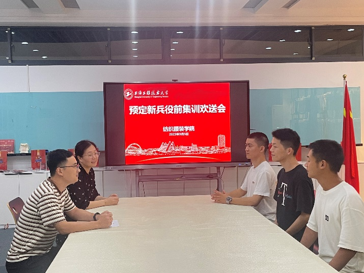 9月5日,纺织服装学院举行2023年下半年预定新兵役前集训欢送会。学院党委副书记谢志霞、征兵工作专职辅导员、退伍生代表和即将光荣入伍的学生参加了欢送会。