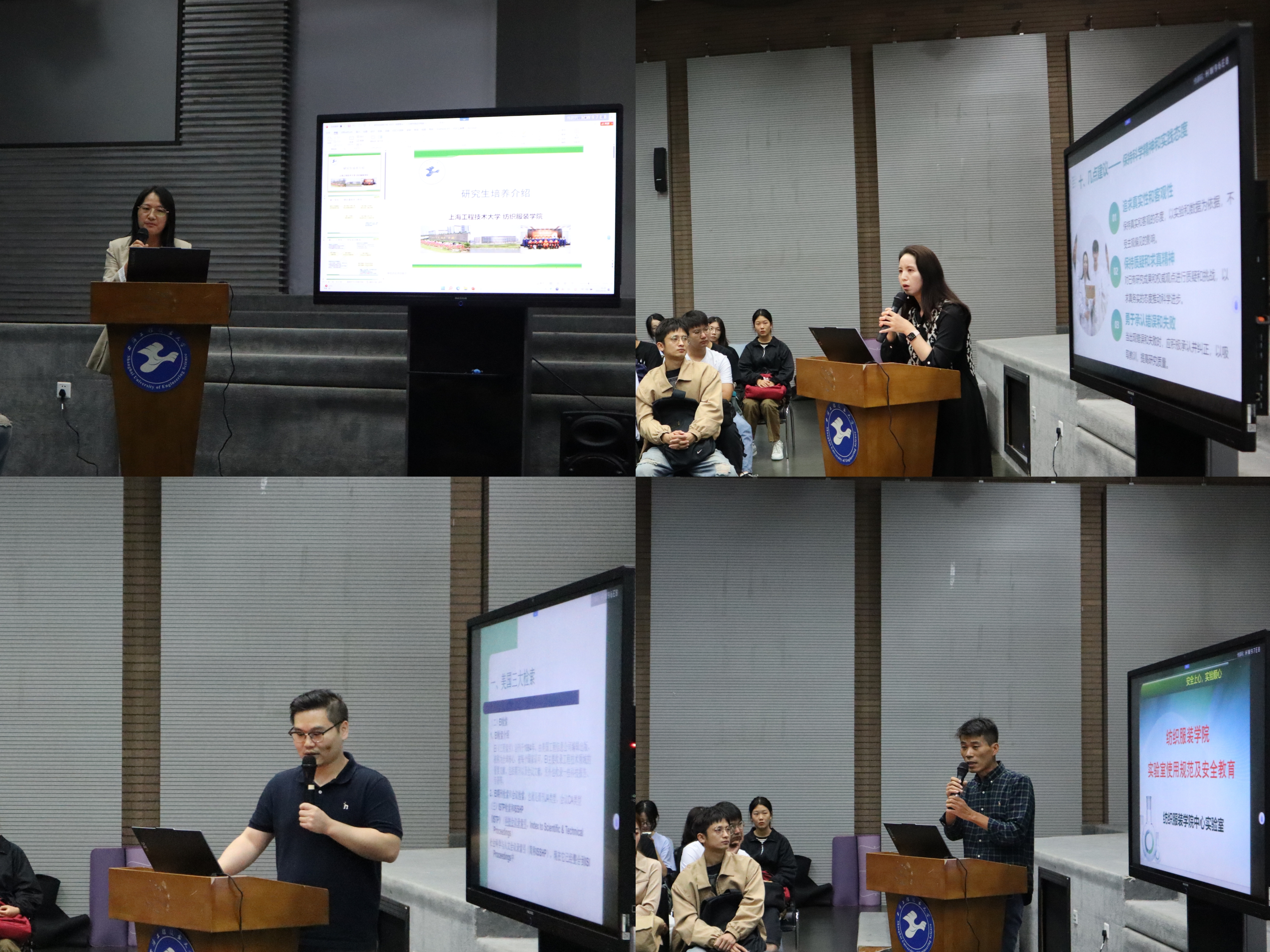 研究生秘书常文静详细介绍了各学科方向的主要研究领域、课程设置、学术要求和研究方向,并列出了各个学科方向的导师,介绍了他们的研究领域、成就和指导风格。科研秘书杨群介绍了课题申报时需要的项目主题和研究目标、申请材料、资格要求、申请截止日期和流程、评审标准、预算规定、申请的战略性考量和可用资源。这一环节为新生提供了宝贵的信息,帮助他们更好地规划自己的学术道路。研究生秘书陆赞则详细介绍了撰写论文时的论文结构、文字格式、引用和参考文献、学术规范和道德、图表和表格、参考文献管理工具、提交和截止日期以及学院和学校特定要求,为新生提供了在学术写作方面的重要指导。实验室主任田丙强则详细介绍了实验室规章制度、安全装备和防护措施、废物处理、紧急情况处理、化学品和实验操作、设备使用和维护以及实验室访客和培训,确保新生们能够安全并有效地进行实验研究。