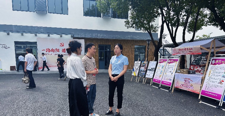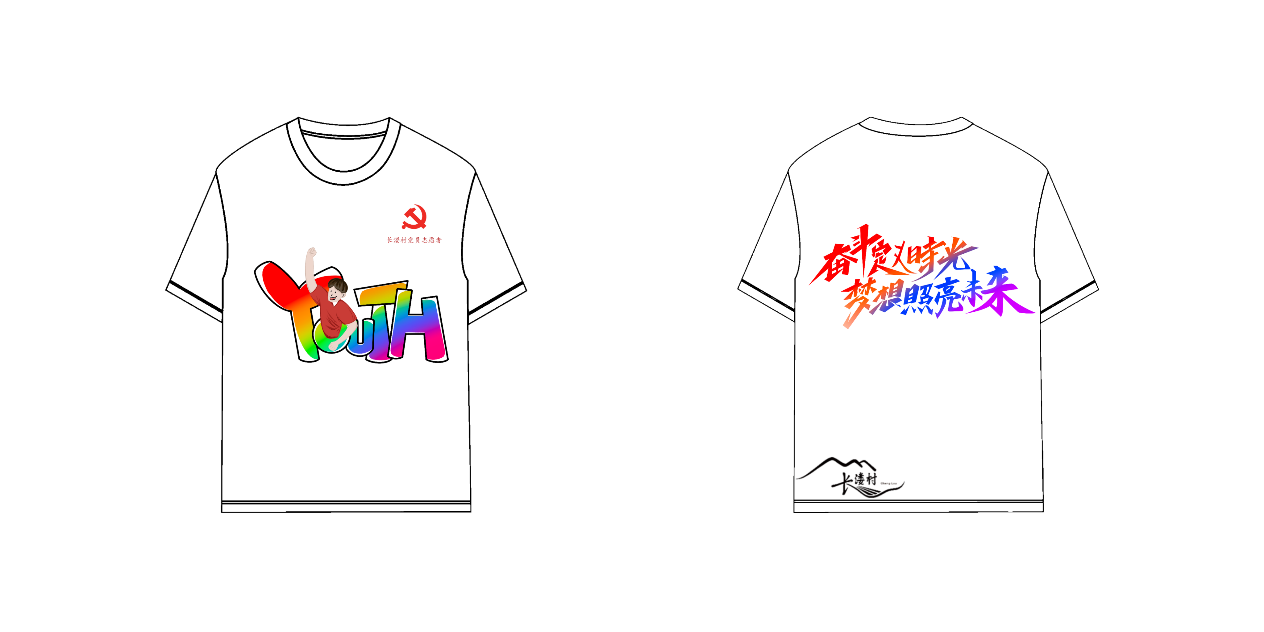 支部代表先后前往长溇村党群服务中心讨论村史和发展以梳理其特色设计元素,并根据织物印花等专业知识判断图案设计方向,围绕青年党员、平安志愿者(50-70岁)、村内妇女志愿者(50-70岁)等三类群体进行了主题设计。支部文化衫设计成果在9月27日车墩镇党委承办的“车墩镇‘美好社区、先锋行动’项目成果展示会”的会场进行了展示和实际应用。