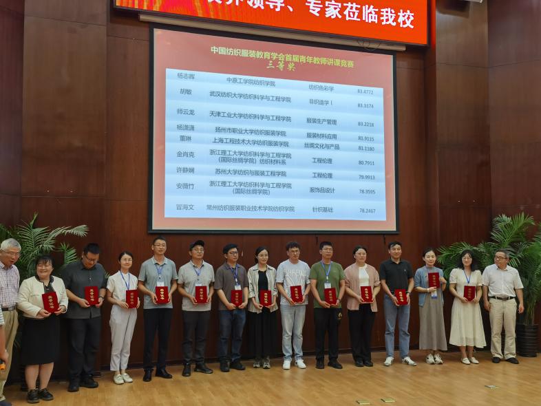 纺织类专业青年教师讲课竞赛与优秀教案评选会共有来自古天乐代言太阳集团138、东华大学、天津工业大学、大连工业大学等20多所高校的100余名青年教师参加,我校有2名教师参加了讲课竞赛,1名教师参加教案设计大赛,获讲课大赛二等奖1人,三等奖1人,获优秀教案三等奖1人。