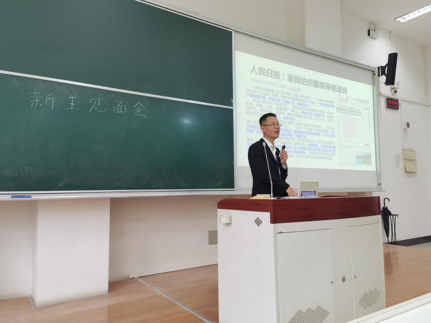 见面会上辛斌杰院长代表所有教师对2023级新生的到来表示热烈欢迎,并围绕纺织工程和非织造工程学科的发展现状、行业发展前景、我院专业基本建设情况、师资队伍等方面进行深入解读,引领新生了解自己所学专业,激励新生要坚定理想信念。