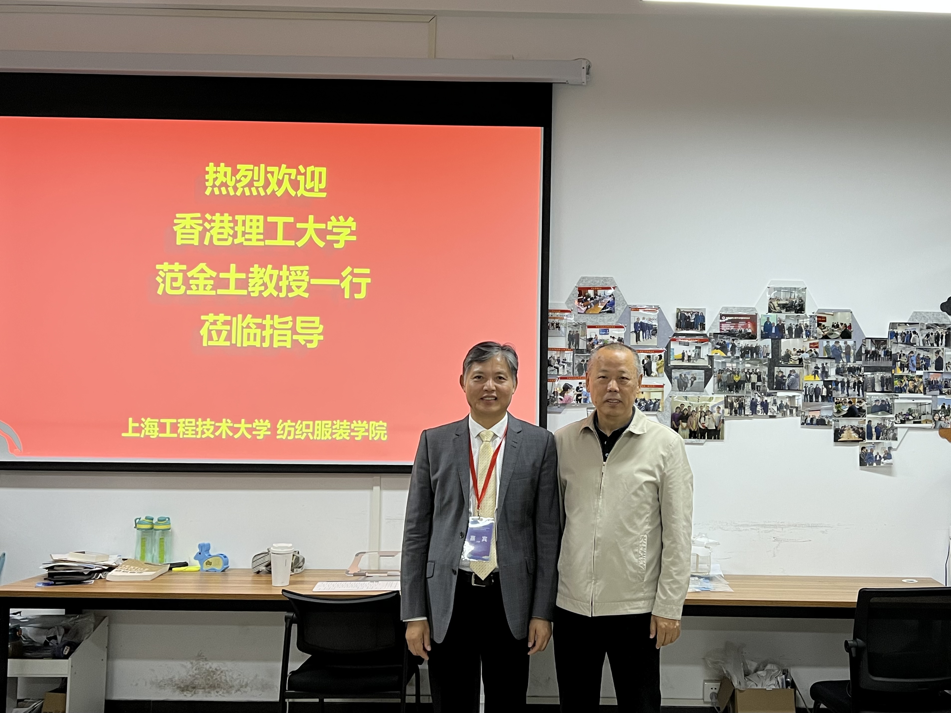 近日,香港理工大学范金土教授一行到访我校ok138cn太阳集团529,参观了纤维材料研究中心,双方就科学研究、人才培养等进行了交流,探讨在纺织科技创新领域寻求新的契合点,进一步加强双方的合作。期间,双方团队对现有的研究成果进行交流与探讨。