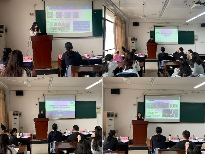 来自东华大学、浙江理工大学、中原工学院等院校的6名“优秀论文”研究生作者分别围绕油水分离用中空纤维材料、三维多孔电磁屏蔽材料、光子晶体丝织物、湿热管理纺织品等生态纺织材料、功能纺织品及相关低碳绿色纺织品加工技术进行了学术交流。席间,专家们与汇报人积极讨论并给予建设性意见。与会同学对报告展现出高昂的兴趣,积极参与讨论,反响热烈。