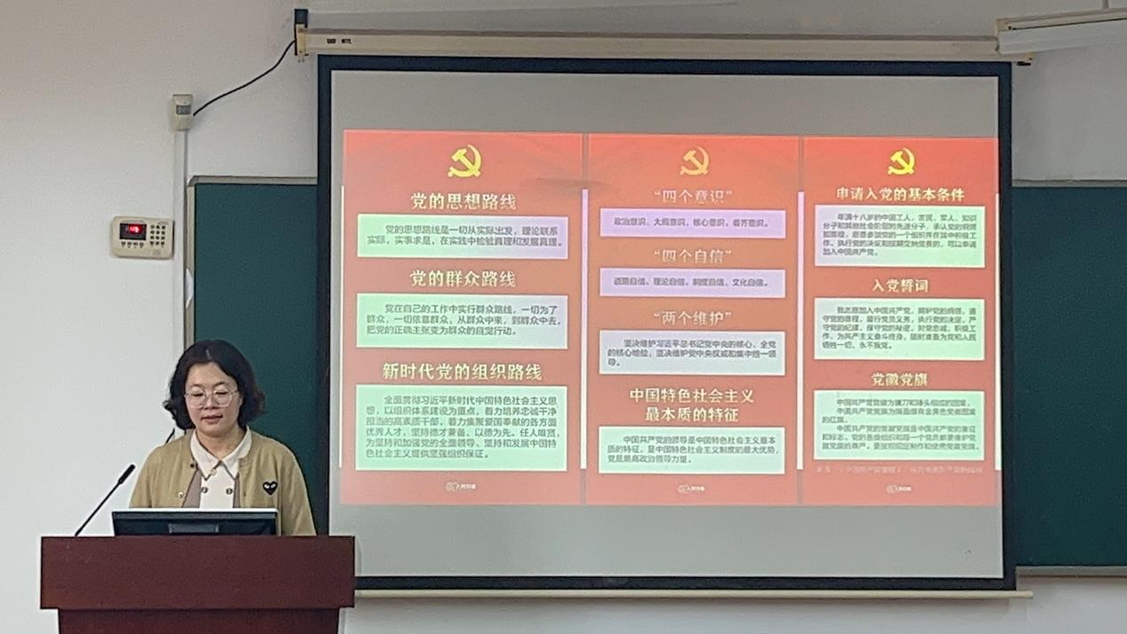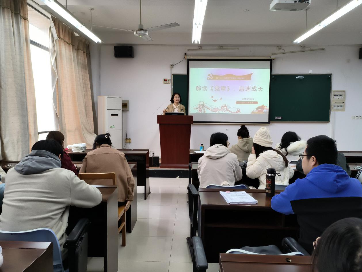 2023年11月15日,“解读《中国共产党章程》,启迪成长”的入党启蒙讲座在ok138cn太阳集团529艺术楼C310举行。由学院党委副书记谢志霞主讲,党章学习小组全体组员参加聆听。