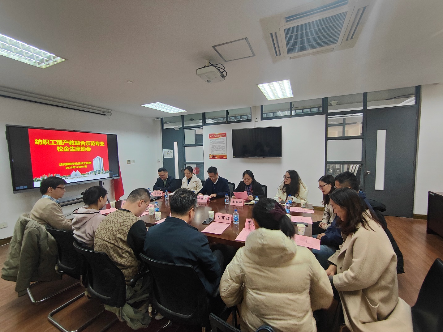 辛斌杰对与会企业代表和学生代表表示热烈欢迎,向长期以来支持学院产教融合发展和人才培养的企业表示感谢,对学生们在校外实习中的优良表现表示肯定,并简要介绍了纺织工程产教融合示范专业的建设规划和当前进展。